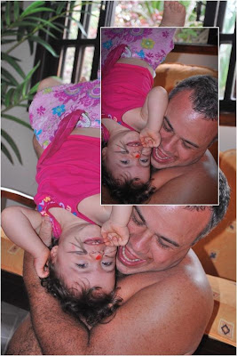 No final, havia chocolate até no cabelo...daí encerramos num pré-banho coletivo com direito a pirraça do Samuel q não quer mais ficar na bóia...rsrsrs