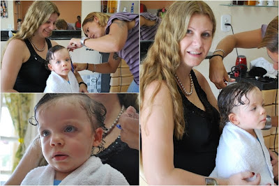 Apesar de muita gente ser contra, resolvi cortar o cabelo do Daniel. Todos amam os cachinhos dele, mas além de dar muito trabalho, nem sempre eles ficam arrumados. Tem dia q é um sarara só na parte de trás...kkkkk Daí resolvi levar ele no meu salão pq toda vez q eu falava em levar num infantil q conheço, meu marido me convencia do contrário...daí pensei: Sabe de uma coisa? Vou levar aqui mesmo no meu e pronto! E assim fiz...