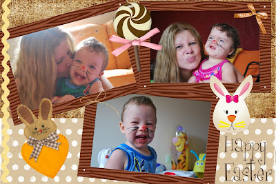 Eu e Filipe sempre fomos de comemorar tudo a dois, mesmo q em casa. É jantarzinhos, sessões de filmes, piscina à noite, etc, etc. Com a chegada do trio, resolvemos manter nossas comemorações românticas (sempre depois das 20h kkkk) pq afinal de contas, precisamos desse momento só nosso. Porém, agora temos tb as comemorações com a galerinha q são sempre divertidíssimas...Na páscoa passada eles só tinham 4 meses e acabamos não fazendo nada...já nesta resolvemos deixá-los experimentar chocolate pra rolar uma farrinha... Pintei eles com narizinho vermelho de guache e bigodinhos de deleniador...rsrsrs sente as gracinhas q ficaram: queria imitar um cordeirinho, mas no final ficou com cara de coelhinho mesmo rsrsrs